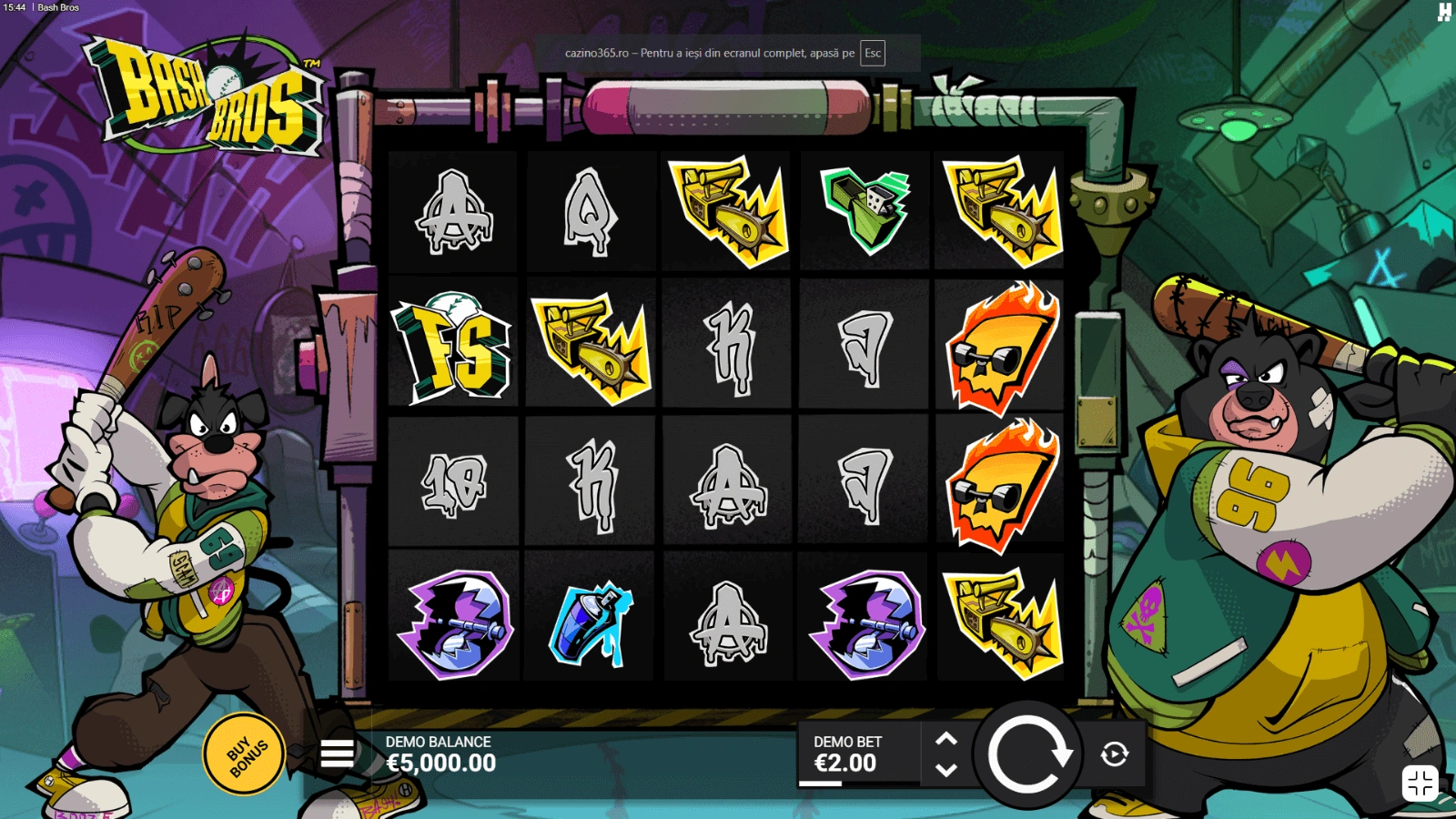 Jocul ca la aparate vine cu o volatilitate extrem de scăzută și cu un RTP peste media industriei. Slotul se desfășoară pe o grilă formată din 5 role, 4 rânduri și 1.024 linii de plată, într-o atmosferă vibrantă și plină de acțiune. Pe durata unei sesiuni la Bash Bros demo, poți iniția 3 runde bonus cu rotiri gratuite, multiplicatori sau simboluri cu bani. Ești pregătit de această aventură?